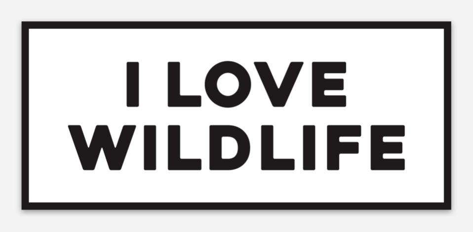Share the message of "I LOVE WILDLIFE" with this 4.5"x2" vinyl sticker.