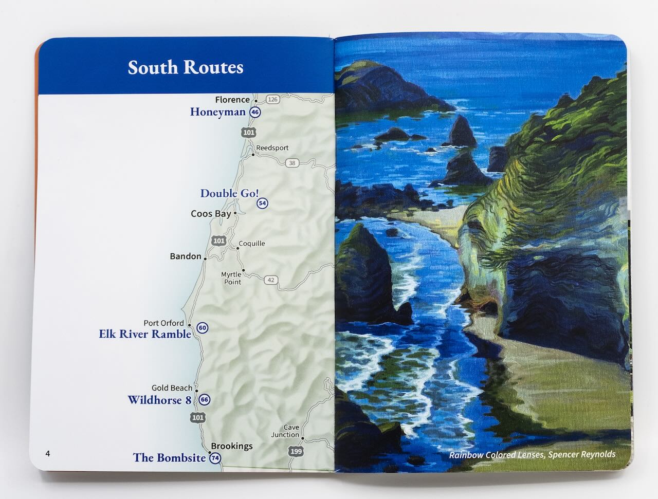Featured artist Spencer Reynolds of Brookings, Oregon, art and style are featured throughout the guide.